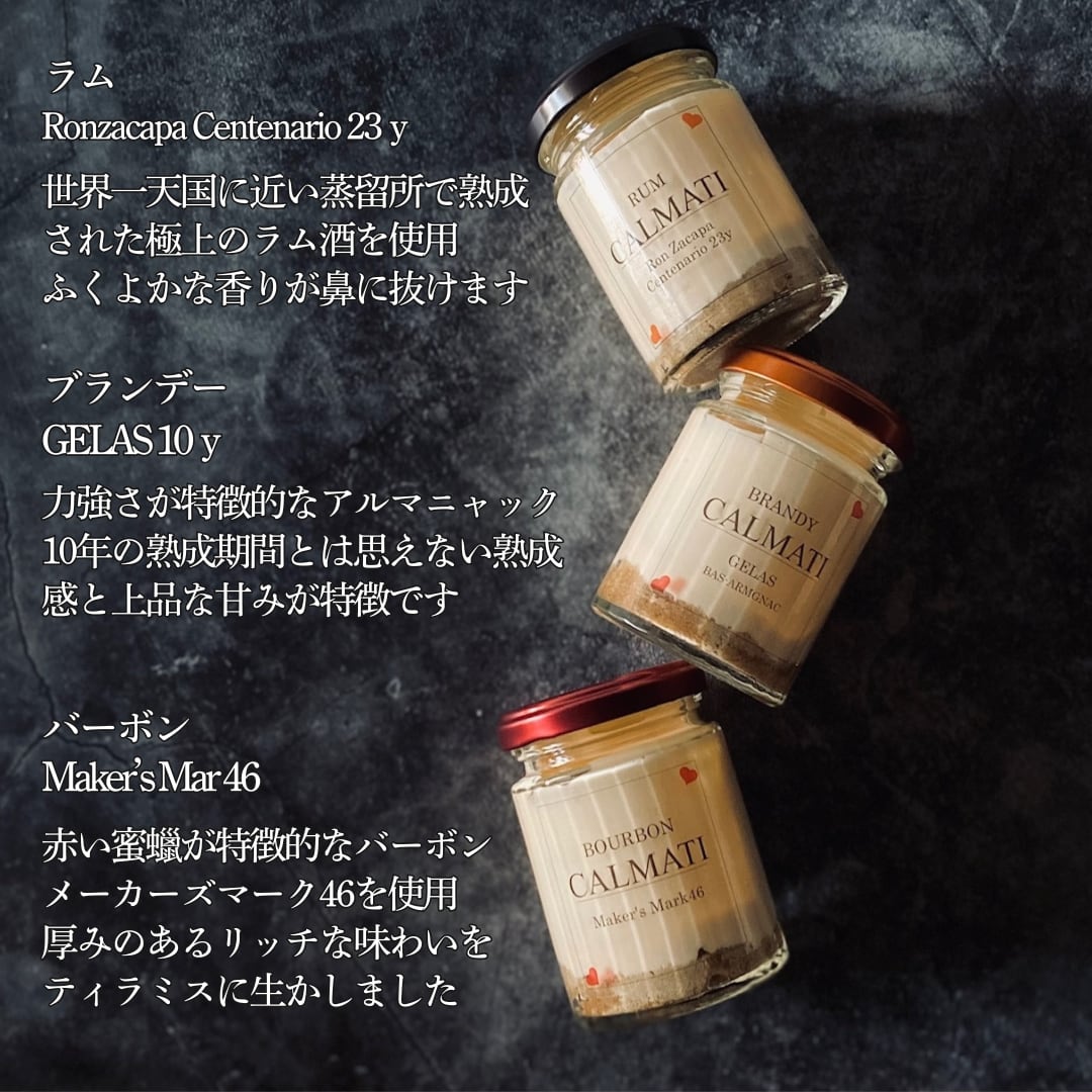 3種類のお酒を使ったティラミスを各2個ずつ
